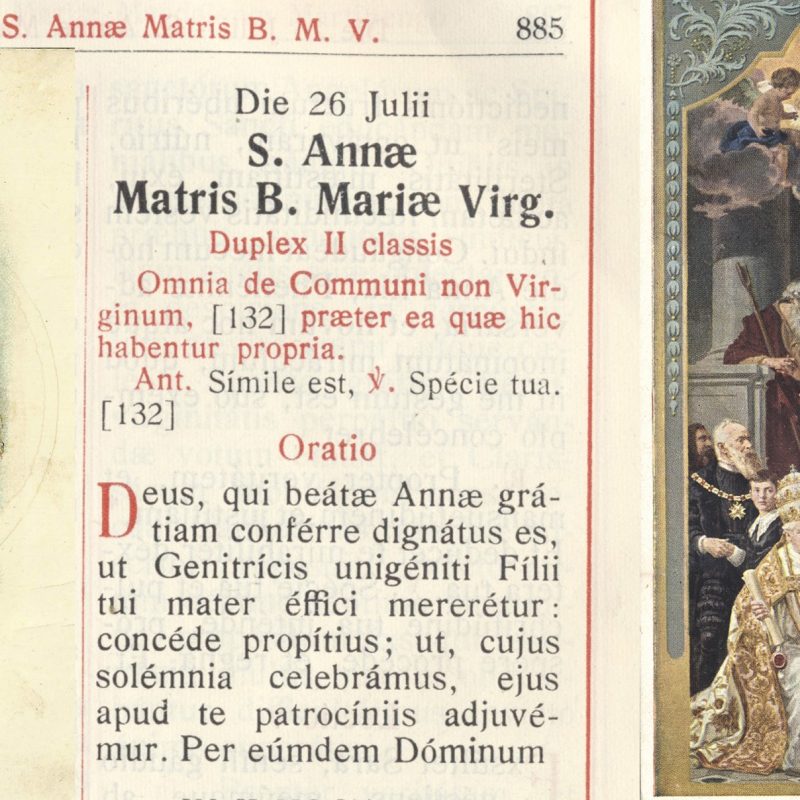 Boże, Tyś raczył udzielić świętej Annie tej łaski, że godna była zostać matką Rodzicielki Jednorodzonego Syna Twego; dozwól łaskawie, byśmy byli wspierani jej orędownictwem u Ciebie. Przez Pana naszego Jezusa Chrystusa. Amen.